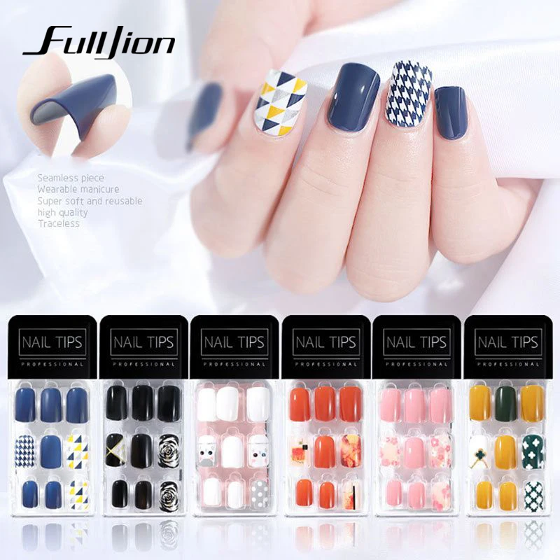 Limited Offer for Fulljion 30Pcs/set Full Cover Nail Tips Fake Coffin Press On nails Acrylic Reusable Short False Nai
