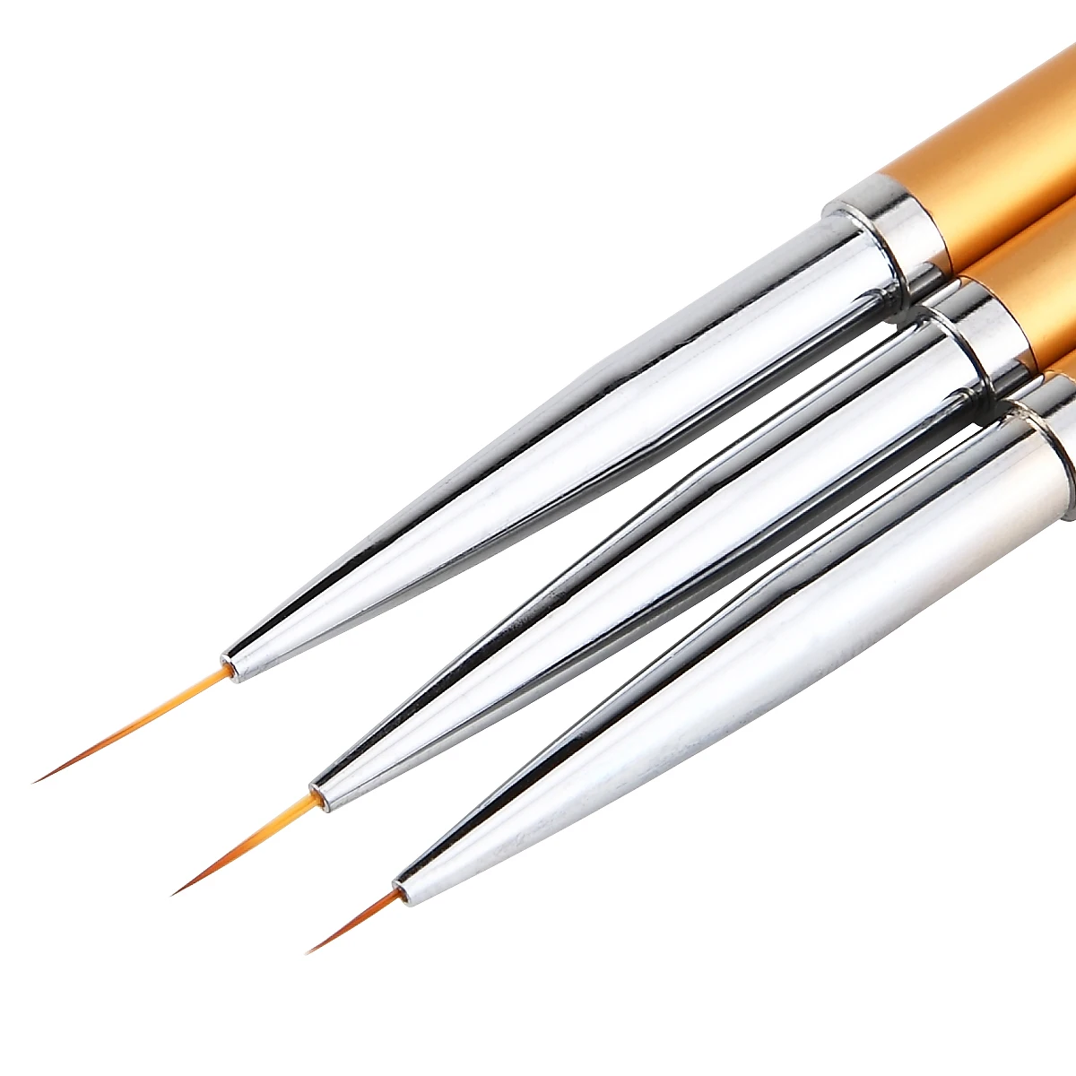 Best Seller Monja 3pcs/set 5mm 7mm 11mm Nail Art Metal French Flower Design Stripe Lines Liner drawing Brush pe