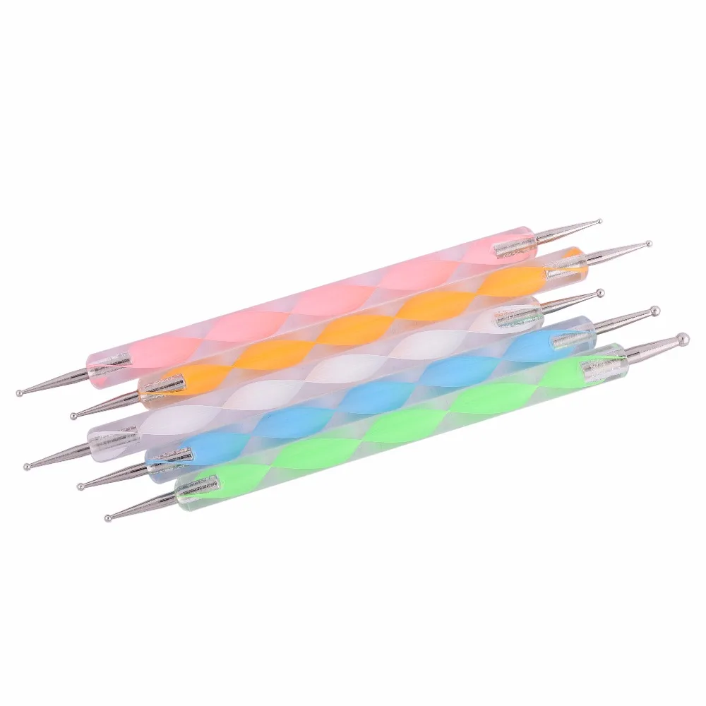 ROSALIND Nail Art Dotting Pens Nail Polish Pen Brush Nail Tools 2 Ways Drill Point Pen Dot Marbleiz