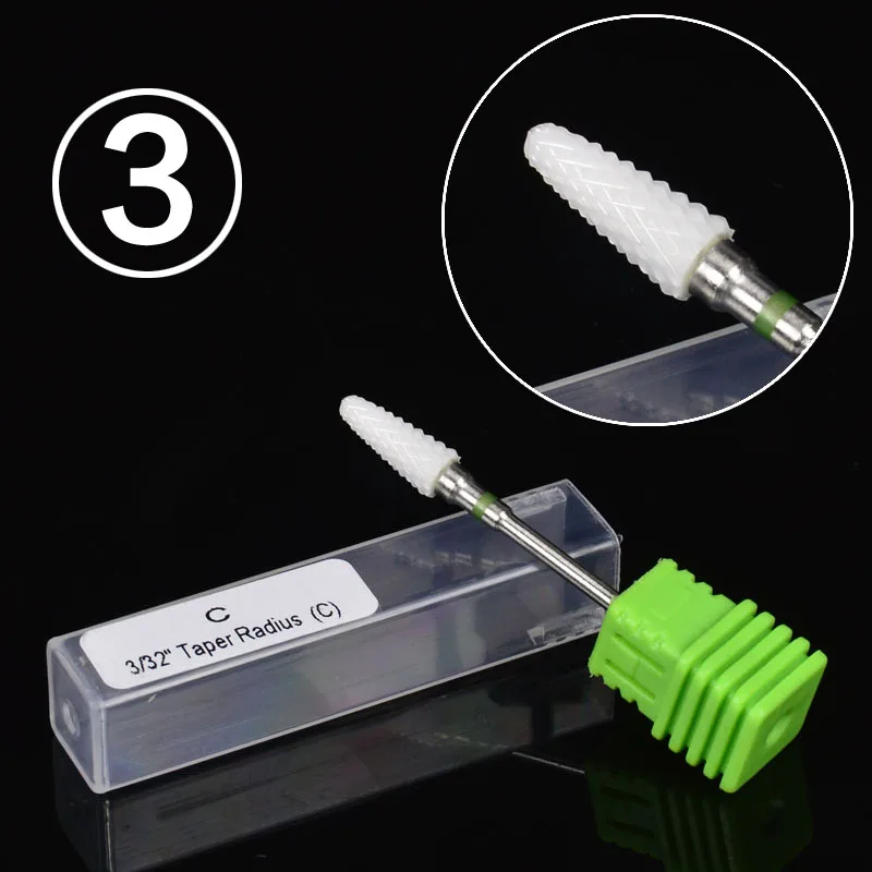 WUF 1pc Ceramic Nail Drill Bit Electric Nail File Drill Bits Carbide Drill 3/32''Manicure Machine Cutter Nail Accessories
