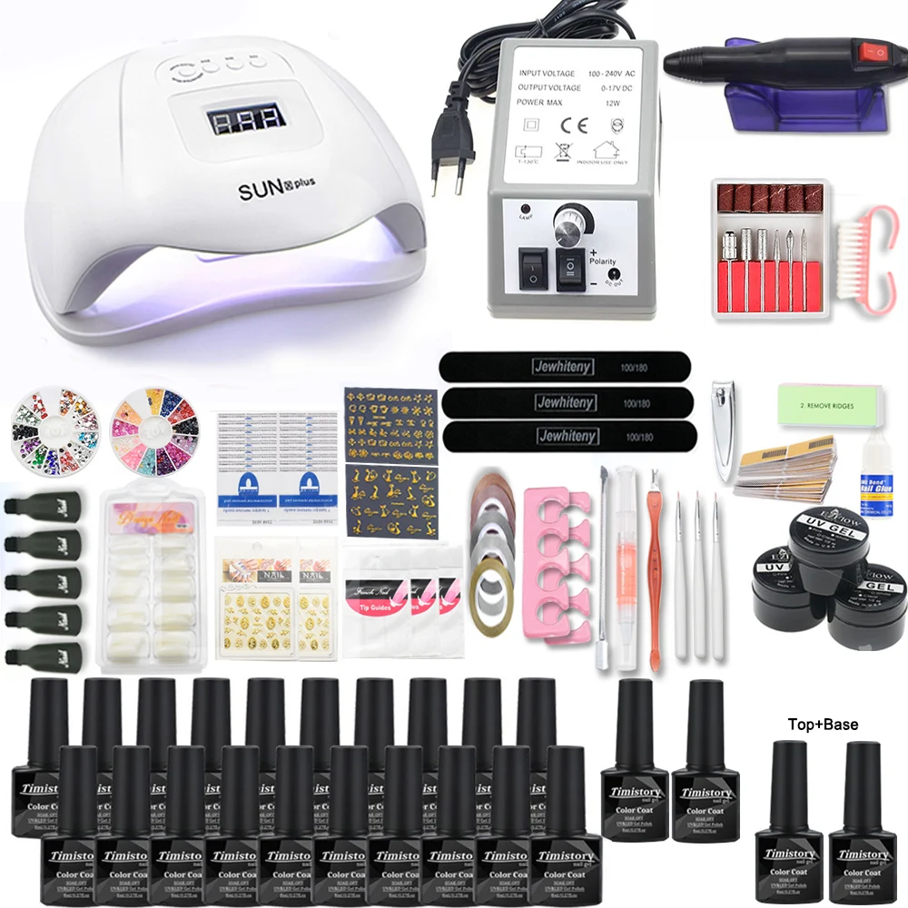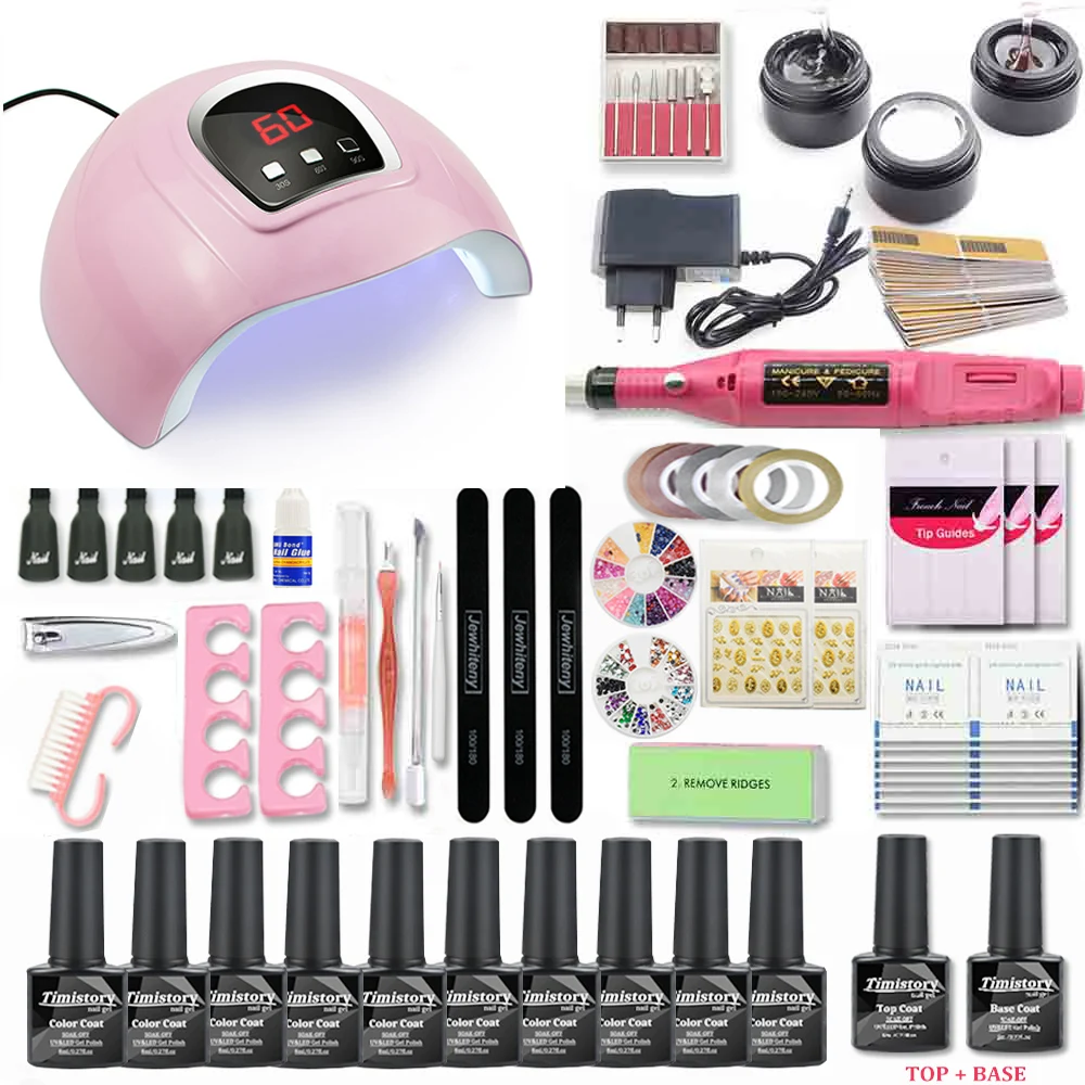120/54/36W LED Nail Lamp Set 20/10 Color Polish With Electric Nail Drill Soak Off Manicure Kit Acrylic Nail Kit Nail Polish Set