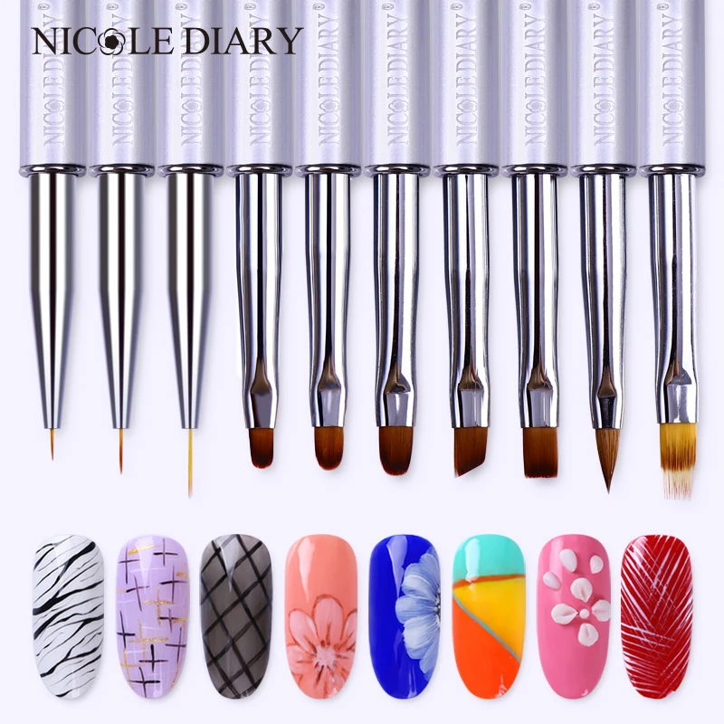 NICOLE DIARY Nail Brush with Cap Liner Painting Pen UV Gel Drawing Gradient Pearl Laser Rhinestone Handle Manicure Nail Art Tool