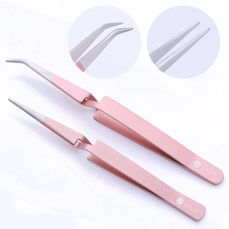 Hot Sale UR SUGAR Cross Lock Reverse Tweezers Rose Gold Straight Elbow Stainless Steel Nail Art Manicure Pro